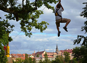 10 m Höhe über ein Rollseil in den eigentlichen Parcour. "Wir