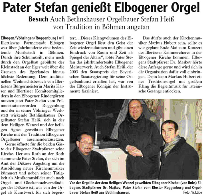 Pater Stefan genießt Elbogener Orgel - IZ vom 07.12.2007